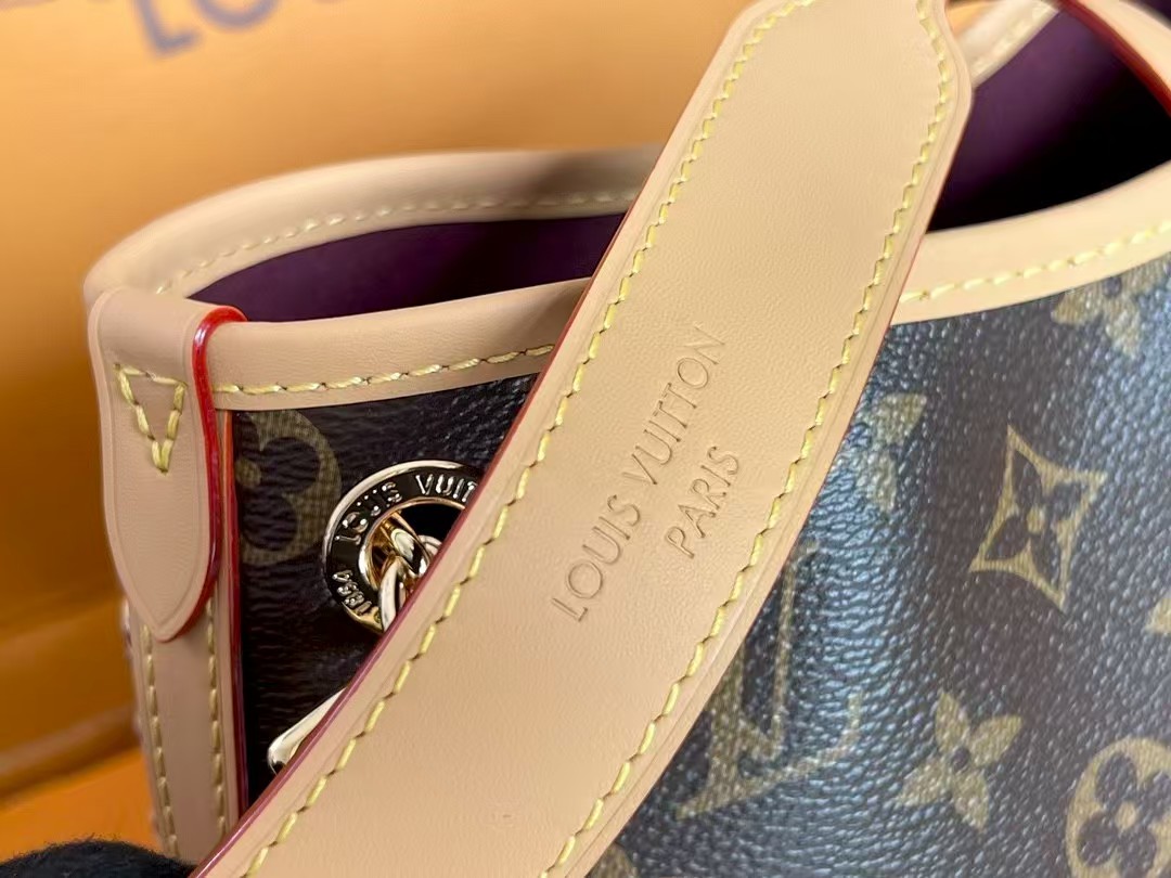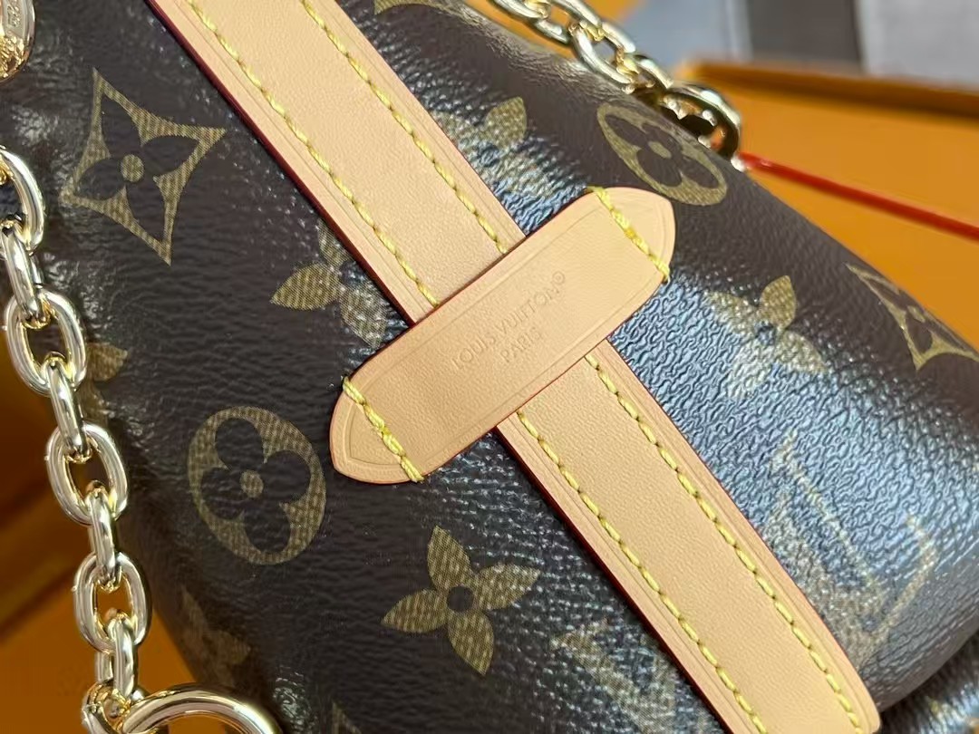 The iconic CarryAll BB is refreshed for the season in this chic day-to-evening edition. Crafted from the House’s Monogram canvas, it is embellished with a gold-toned chain adorned with Monogram Flowers. Signature details include a contrasting leather name tag, which beautifully matches the lace closure. Use the inside zipped pocket to keep an everyday credit card within easy reach.