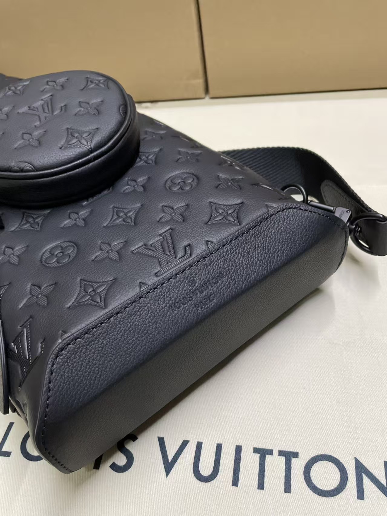 LOUIS VUITTON Calfskin Shadow Monogram Duo Slingbag Black