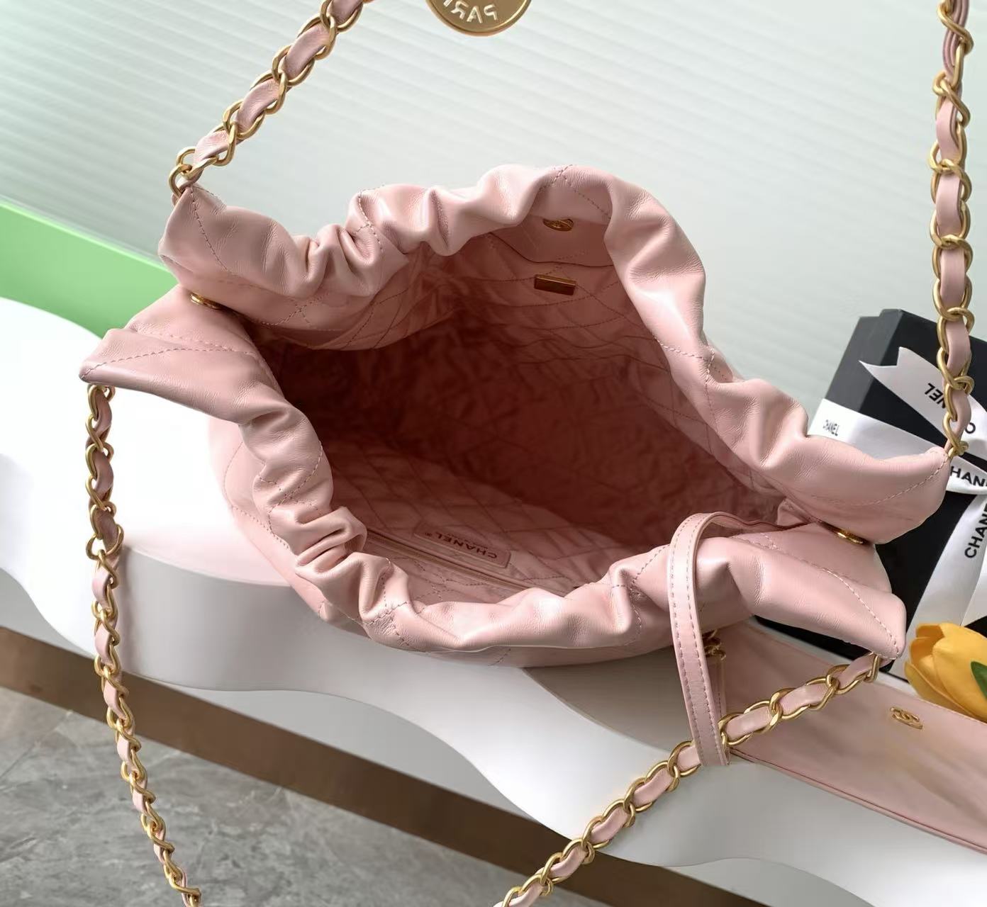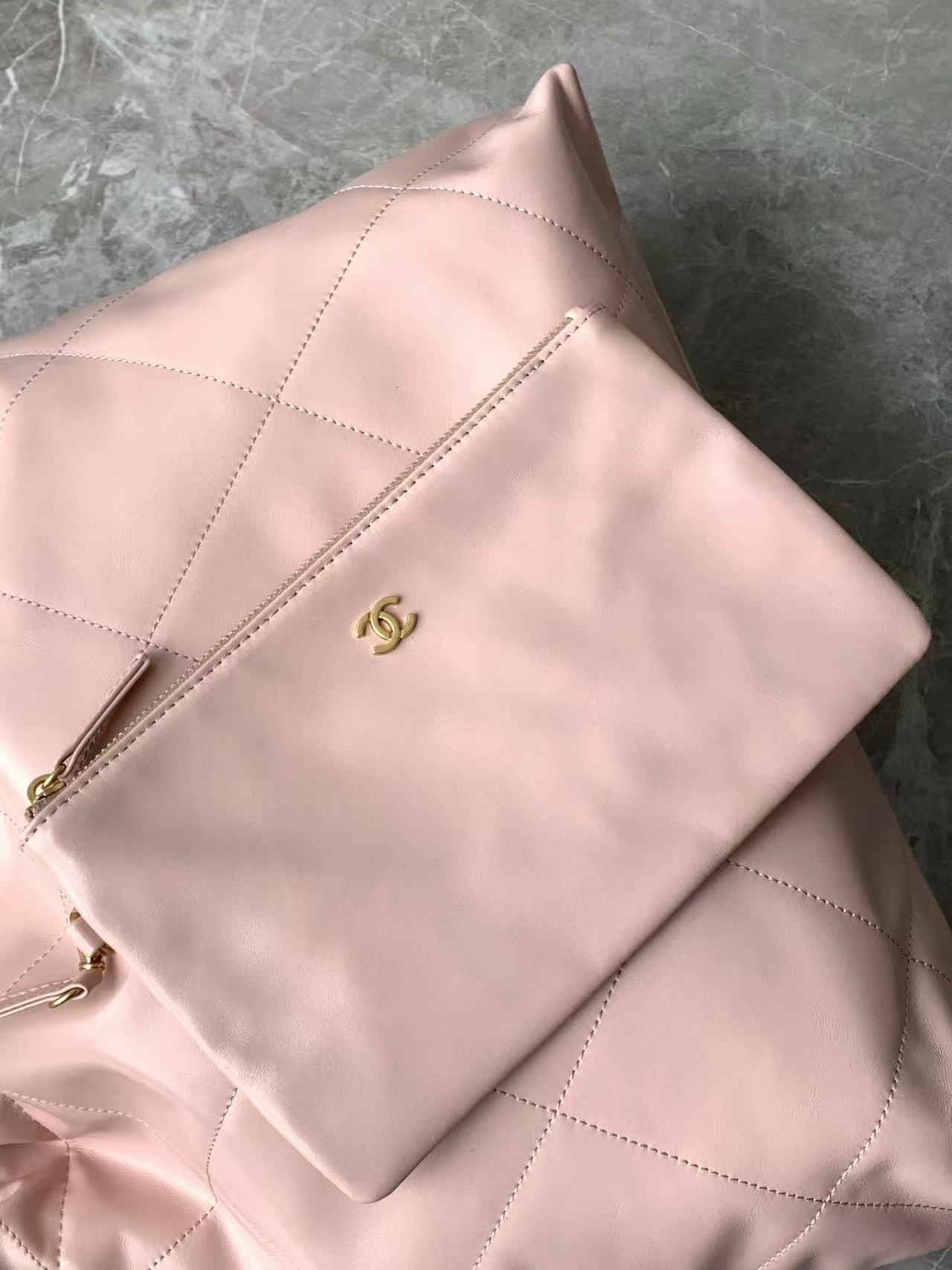 CHANEL Shiny Calfskin Quilted Medium Chanel 22 Light Pink